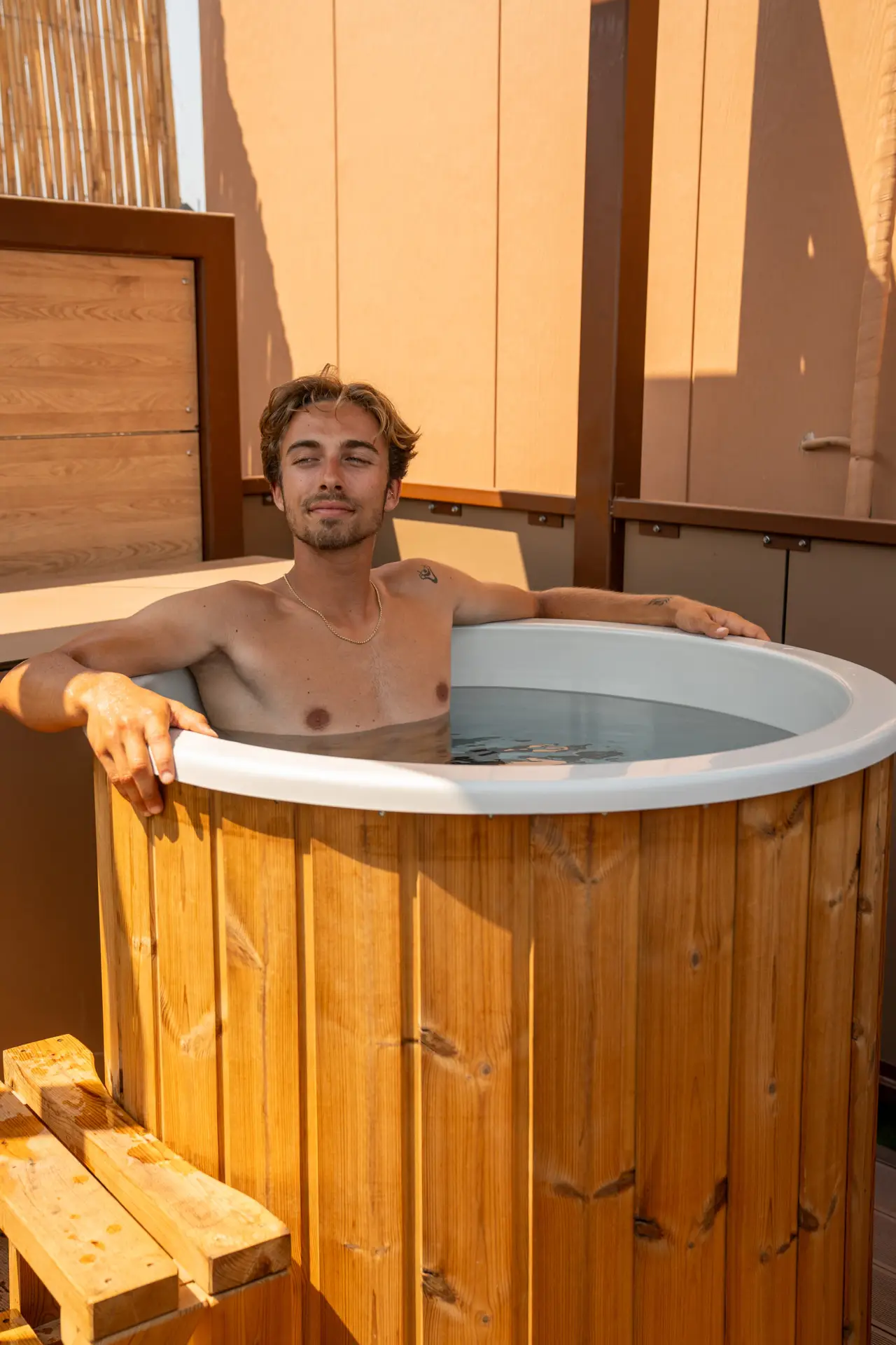 Lassen Sie den ganzen Stress des Tages hinter sich. Mit der Ruhe des Wassers und dem natürlichen Duft von Holz klären Sie Ihren Geist und erfrischen Ihre Seele.