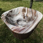 Fleckenresistente, kratzfeste und antibakterielle Acryloberfläche. Mit verschiedenen Marmor‑Mustern und Farboptionen passt sie sich perfekt der Dekoration Ihres Gartens an.