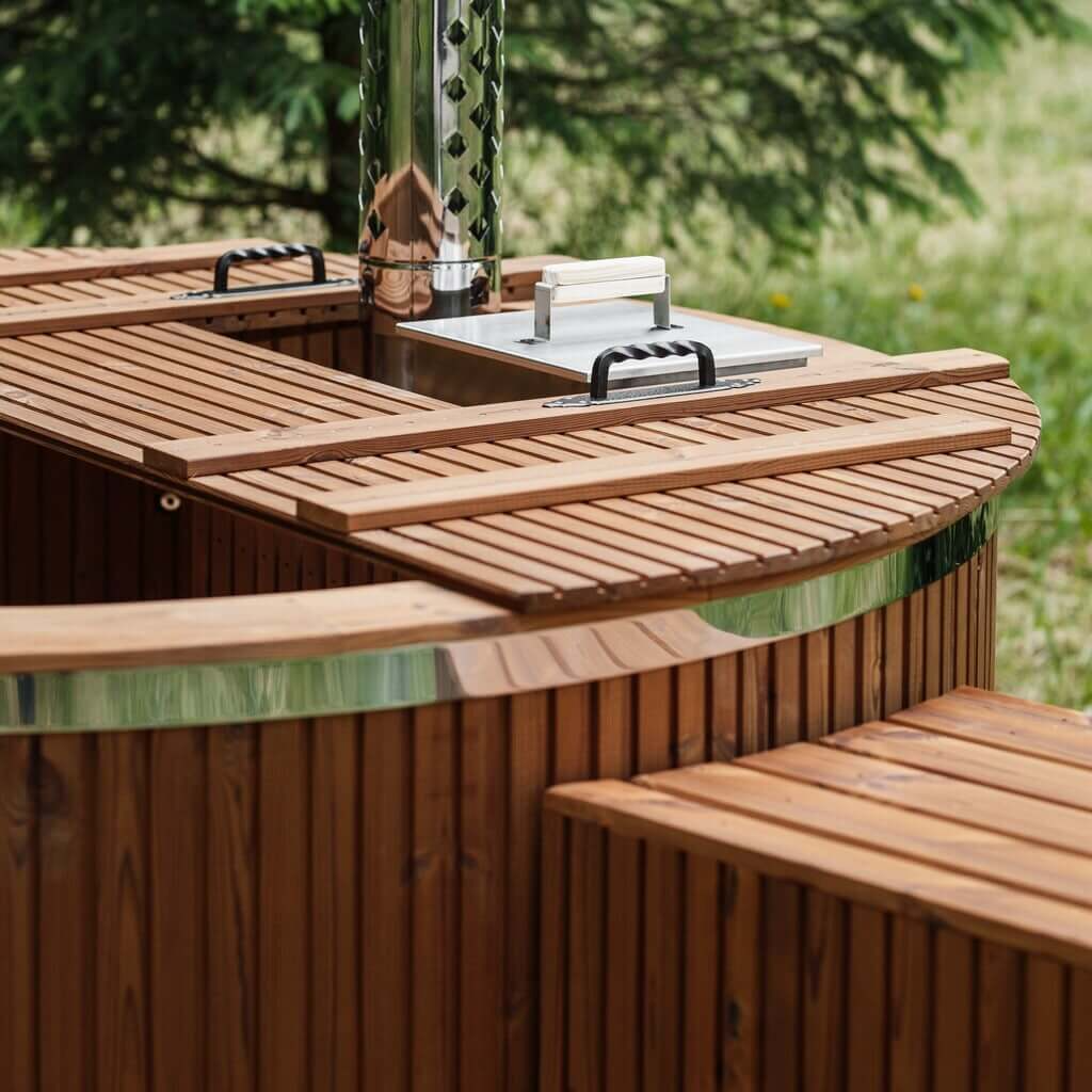 Unsere Whirlpools sind mit Holzofen- oder elektrischen Heizoptionen erhältlich. Das Holzofensystem bietet natürliche und kostengünstige Wärme ohne Strombedarf, während der elektrische Heizkörper schnelle, praktische und kontrollierte Nutzung ermöglicht.