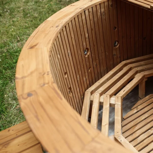 Der Nordu Hot Tub überzeugt mit seiner rustikalen Ästhetik und verbindet die natürliche Wärme des Holzes mit modernem Design – für entspannte Momente in stilvollem Ambiente.