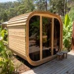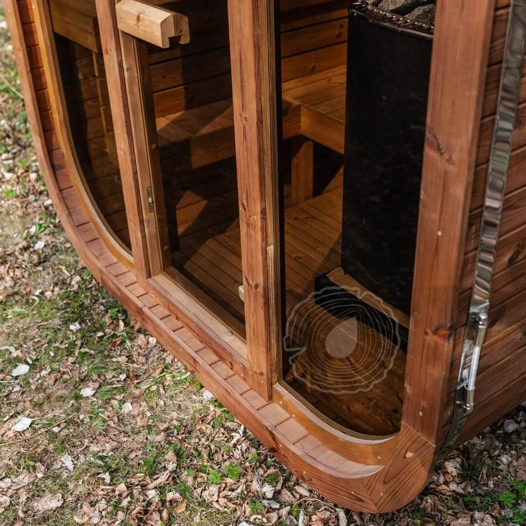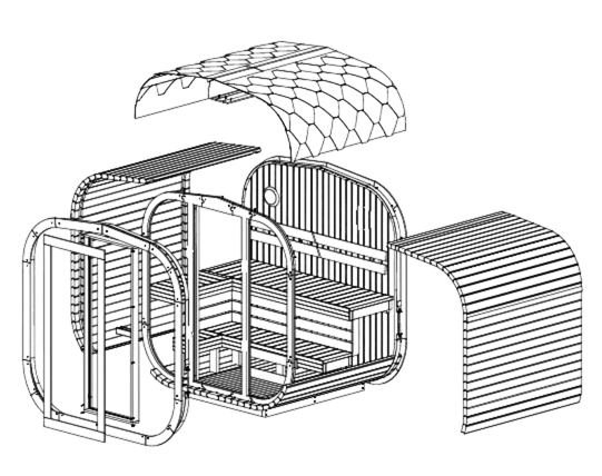 Aura Sauna – maßgefertigtes Vollholz-Dach nach Wunsch.