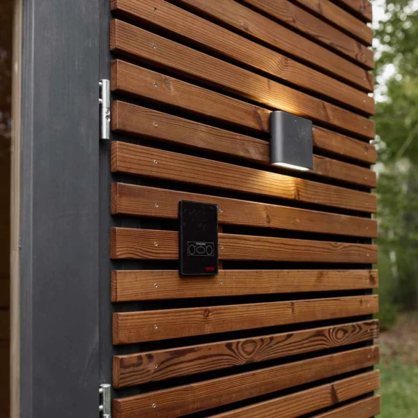 Die speziell für die Sauna ausgewählte LED-Beleuchtung ist unter den Bänken, hinter den Rückenlehnen aus Holz und gelegentlich an der Außenseite der Sauna angebracht.