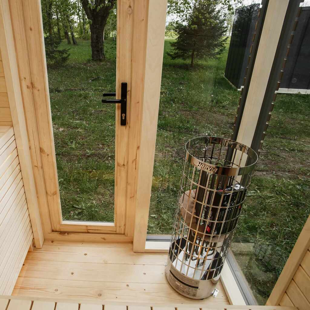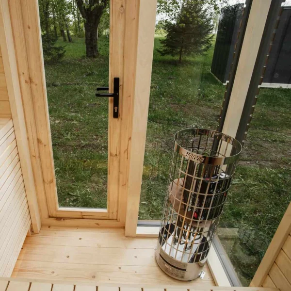 Alle unsere Saunen werden vormontiert geliefert. Sie müssen lediglich den Elektroanschluss herstellen und die Sauna mit einem Gabelstapler oder Kran abladen