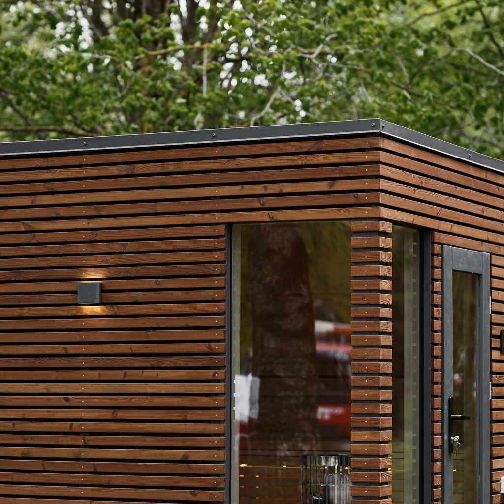 Aura Sauna – maßgefertigtes Vollholz-Dach nach Wunsch.